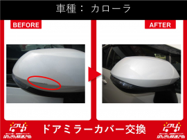 しかし、幸いなことにドアミラーの本体の素地部分の損傷が目立たなかったため、ドアミラーカバーのみの交換をご提案させていただきました。
