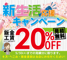 5/30(火)までにお見積もりされた方は、鈑金工賃が20%OFFに!